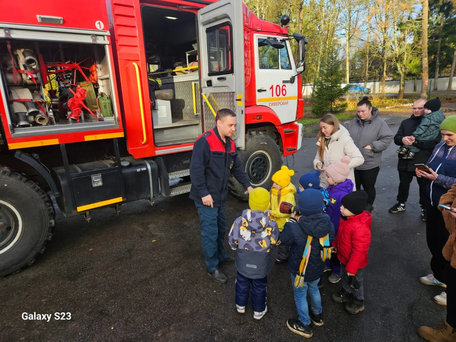 Инструктор противопожарной профилактики Екатерина Кузьмина провела детей по пожарной части, где ребята увидели гараж с техникой, учебный класс, пункт связи и комнаты отдыха личного состава. Детям рассказали о правилах пожарной безопасности дома и о том, как действовать в случае возникновения пожара. С родителями воспитанников детского сада была проведена отдельная беседа об ответственности за соблюдение правил пожарной безопасности в быту, о недопустимости оставлять детей одних дома без присмотра, а также о правилах хранения легковоспламеняющихся веществ.
